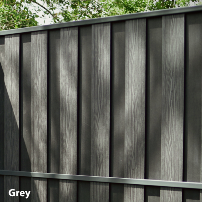 The DuraPost® Vento Composite Fence Panel is meticulously engineered to provide unparalleled durability and timeless elegance. Measuring 1795mm in length, 125mm in width, and boasting a thickness of 10.5mm, these panels offer a robust solution for vertical-styled fences. Crafted from a composite material comprising high-density polyethylene (HDPE) and rice husks, they combine strength with sustainability. The panels feature a double-sided finish, with one side exhibiting a wood grain effect and the other showcasing a brushed effect. The smooth powder-coated rails enhance durability and aesthetic appeal.