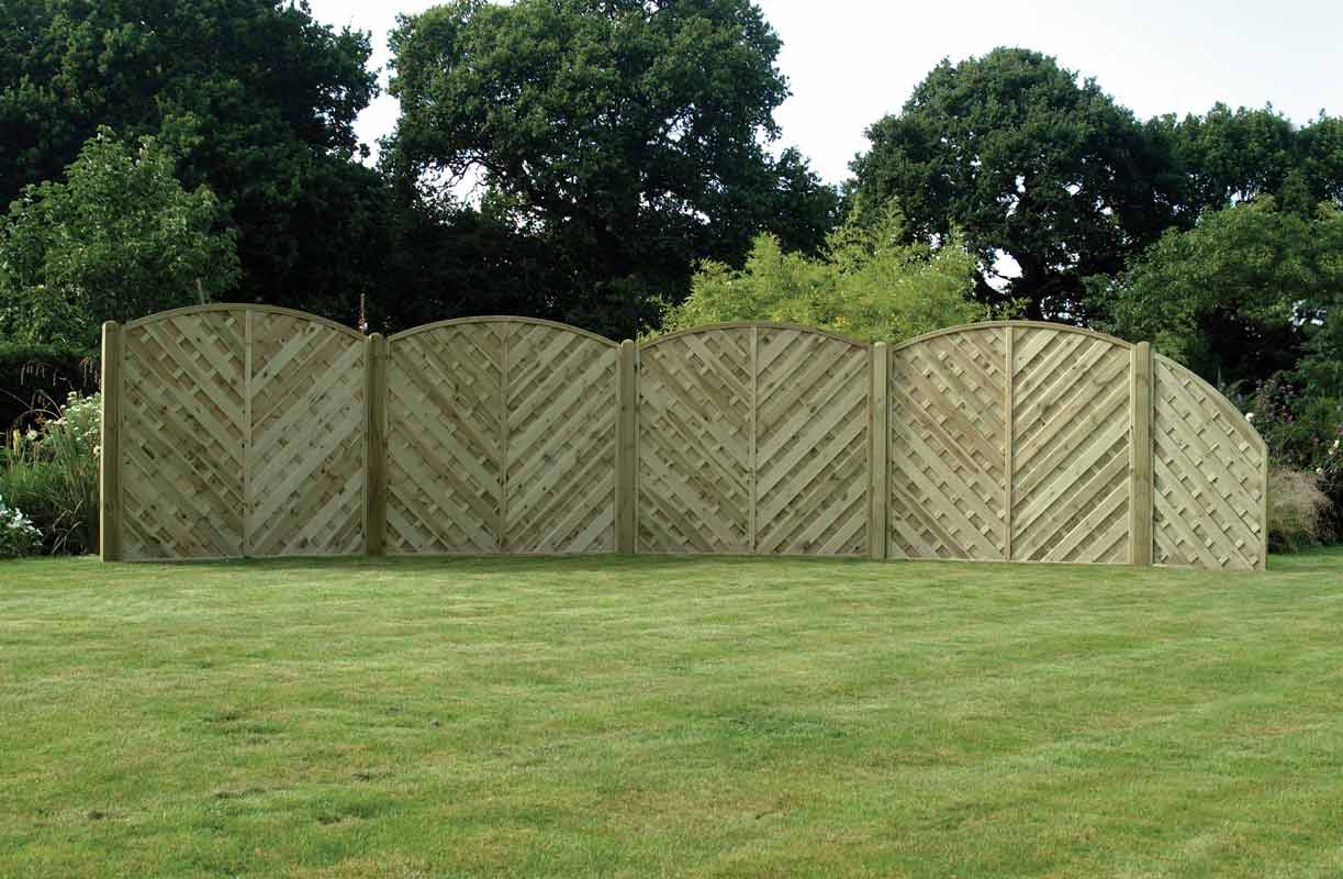 The ‘V’ Arched panel has a planed, ribbed finish and is pressure treated with a light green preservative to enhance the decorative style and protect the timber. Matching gate available.